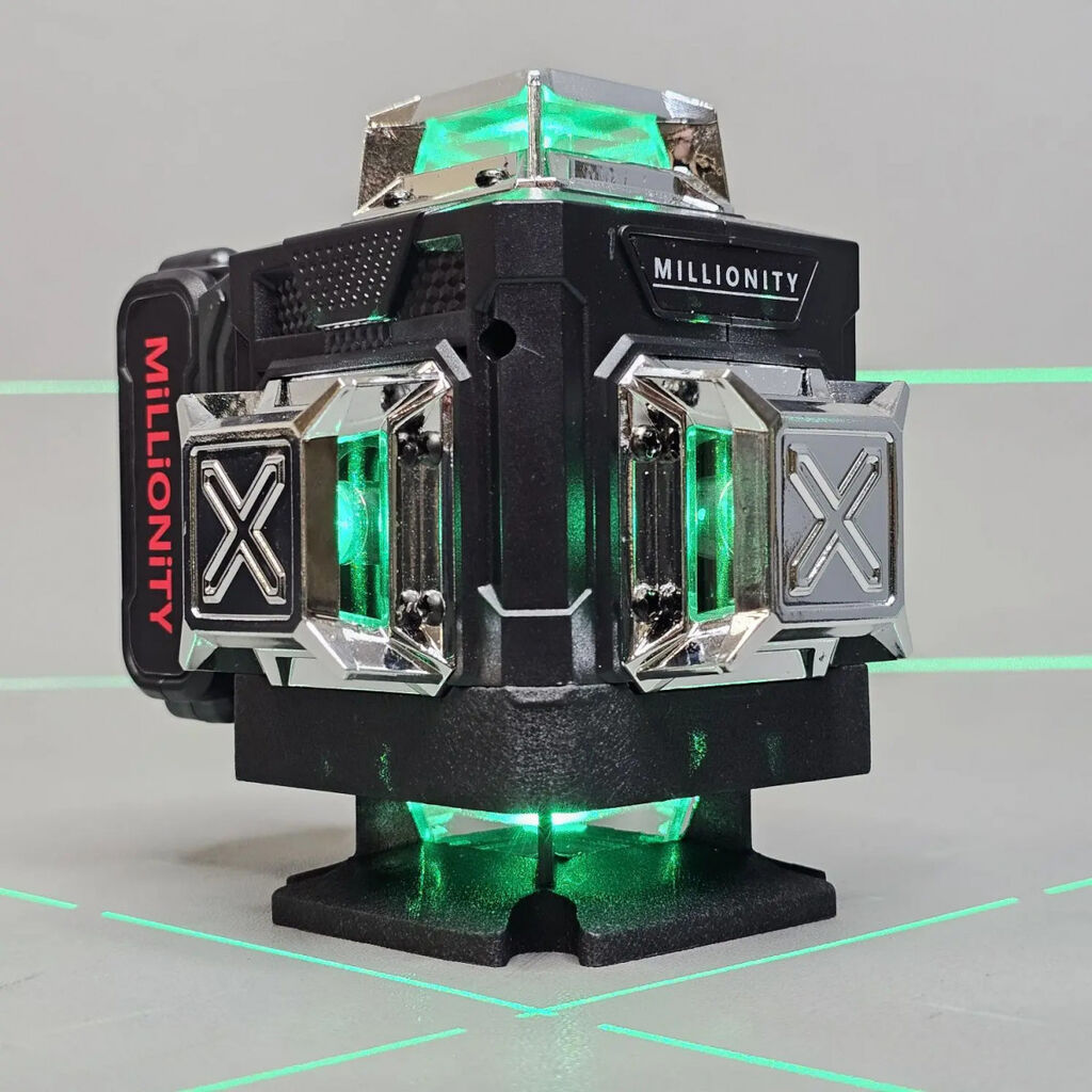 Лазерный уровень Millionity 4D 360°, Профессиональный нивелир, 16 линий, зеленый луч, с аксессуарами в кейсе.