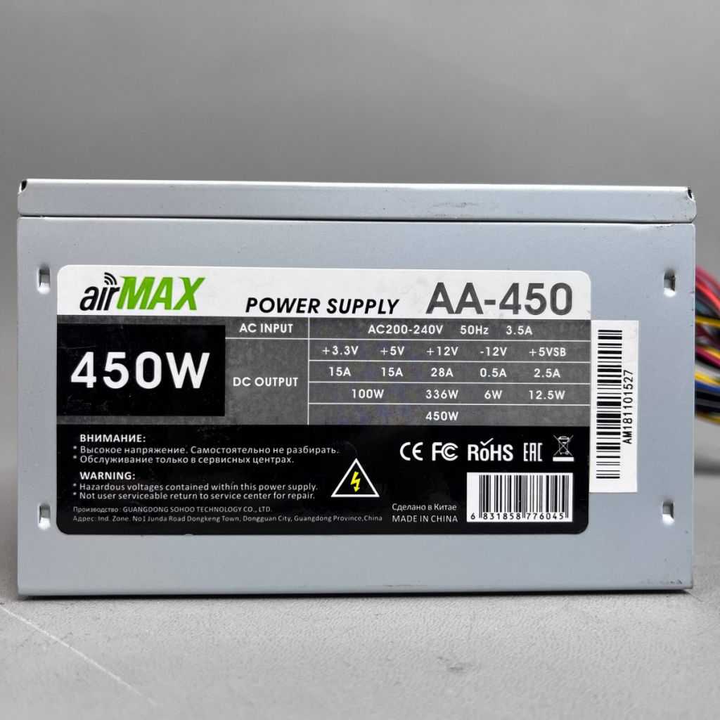 Купить Блок питания AirMax AA-450W 450W ATX 24+4+8пин, 120mm в интернет магазине Техносэконд за 1000 руб. с ГАРАНТИЕЙ по адресу ул. Усти-на-Лабе, д. 16а. Цены на Блоки питания / ИБП. Доступны услуги Trade-in (трейд-ин) и кредитования. Доставка по РФ б у техники (условия уточняйте по телефону, на официальном сайте tehnosecond.ru, а так же во всех наших офисах в городе и в социальных сетях). Каталог б/у электроники во Владимирской области.