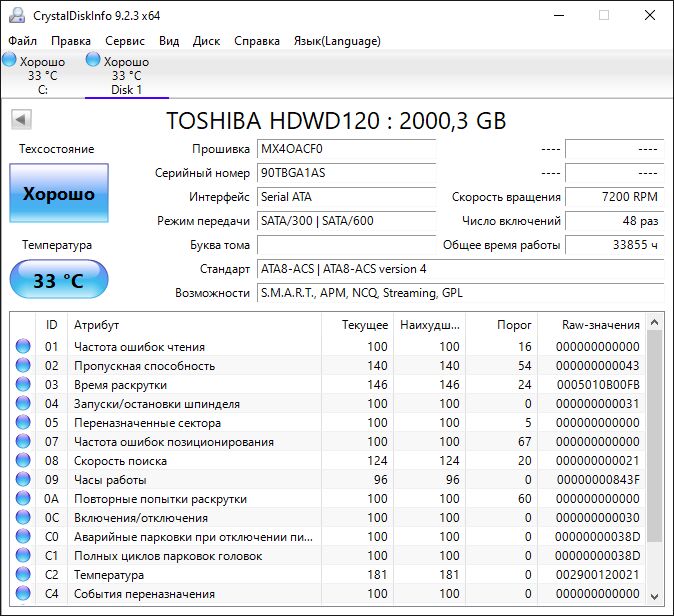 Жесткий диск Toshiba HDWD120UZSVA 2Tb (1AS)